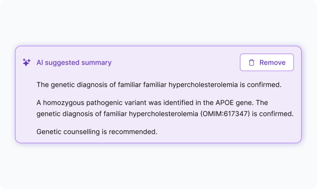 Automated audit trails, configurable reporting, and continuously updated variant intelligence ensure transparent, validated, and compliant clinical decision-making.