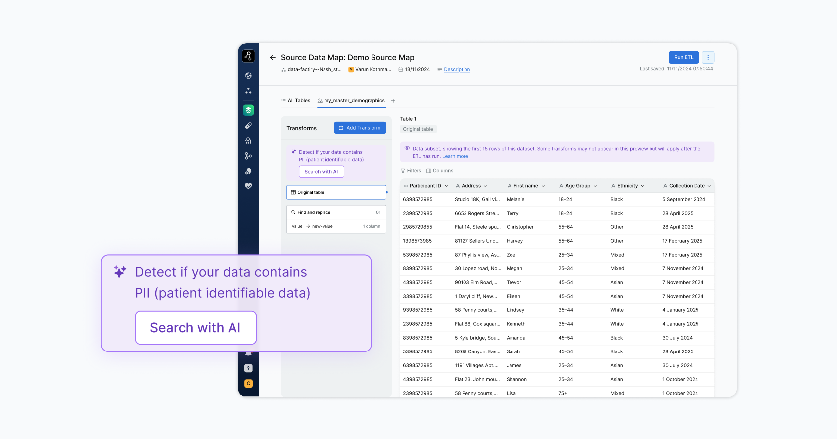 Ingest genomic, clinical, and phenotypic data from multiple biobanks and sequencing centers. Lifebit harmonizes data to OMOP, FHIR, and GA4GH standards—ensuring interoperability from the start.